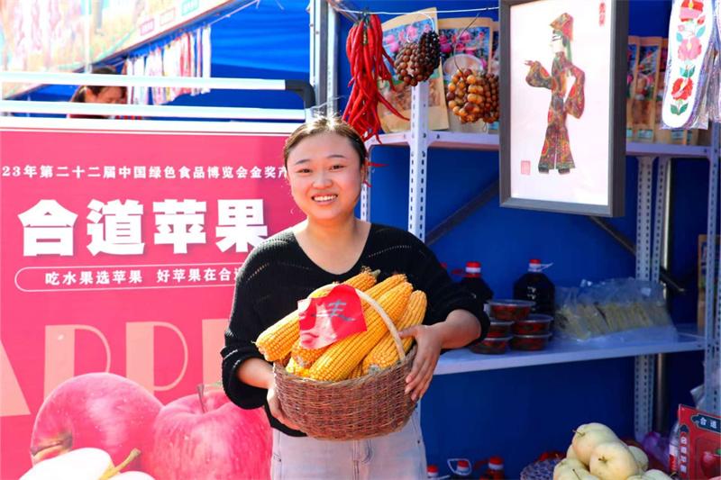 合道鎮(zhèn)工作人員鄧佳樂正通過直播熱情推介家鄉(xiāng)特產(chǎn):“這是咱合道的新蘋果,脆甜脆甜的;這是林下散養(yǎng)的土雞蛋……”她介紹,本次市集精選了17種優(yōu)質(zhì)農(nóng)產(chǎn)品,充分展示豐收成果。環(huán)城鎮(zhèn)展位前,兩個(gè)重達(dá)40多斤的巨型南瓜吸引眾人圍觀。工作人員楊雅楠說(shuō):“我們帶來(lái)的近50種產(chǎn)品,都是直接從農(nóng)戶家收購(gòu)的新鮮貨。”