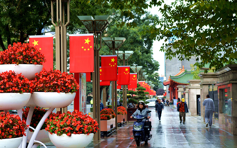 漫步城區(qū)主街道,一面面鮮紅的國(guó)旗整齊懸掛于道路兩側(cè)燈桿,在微風(fēng)中迎風(fēng)招展。耀眼的紅與明亮的黃交相輝映,既彰顯出家國(guó)同慶的莊嚴(yán)氣象,又傳遞著團(tuán)圓佳節(jié)的溫馨暖意,讓天水這座古城在雙節(jié)前煥發(fā)出別樣的活力與溫情。 新甘肅·甘肅經(jīng)濟(jì)日?qǐng)?bào)記者 張文都 攝